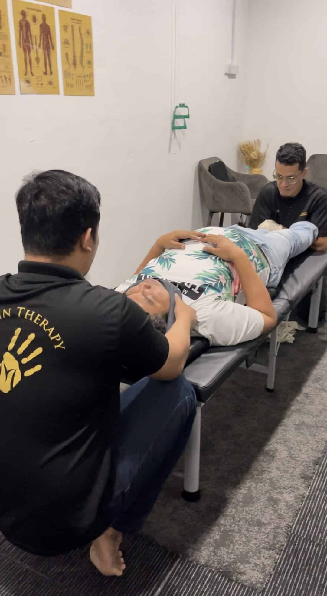 Urutan ada untuk lelaki dan wanita. Untuk wanita tukang urut wanita, urutan lelaki dilakukan therapist lelaki.